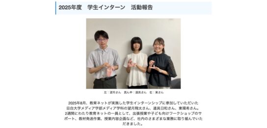 本学科メディア学部メディア学科の3年生3名が、2025年8月に株式会社教育ネットのインター…
