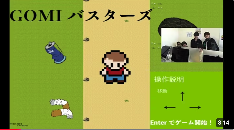 学期中は、学んだ基礎を基にして、自分達でどんなゲームを創るか、どうやったら出来るか、調べたり考えたり話し合ったり、企画から制作までワイワイガヤガヤやってます。是非、実際に学生達が制作したオリジナルのゲームの実況動画をご覧下さい。ゼミの雰囲気も伝わって来ると思います。