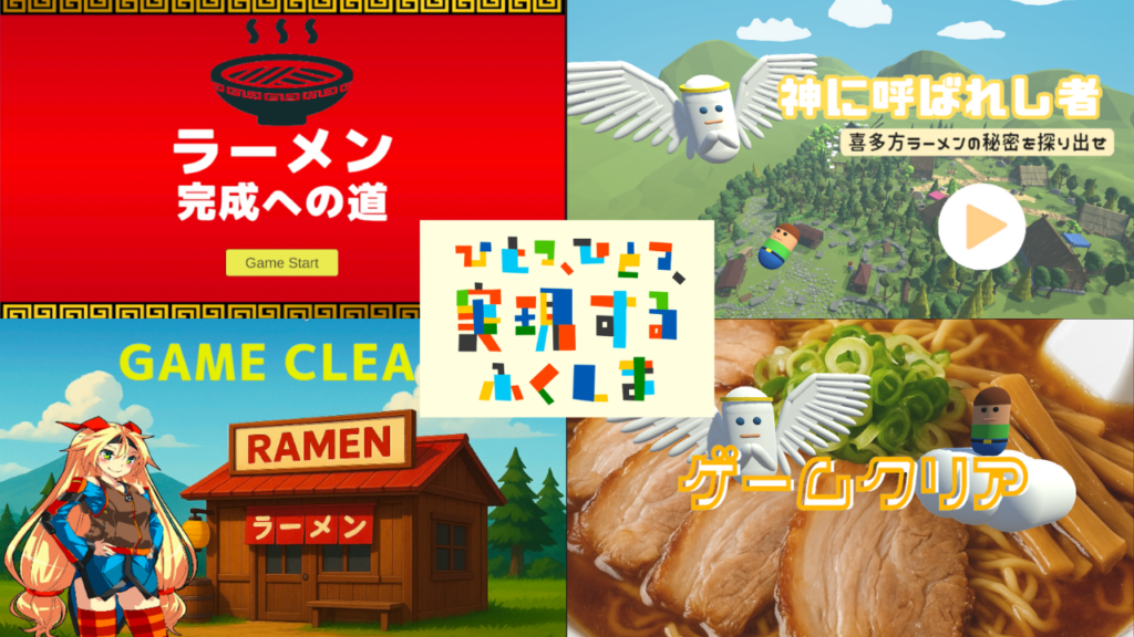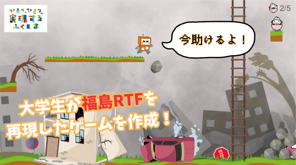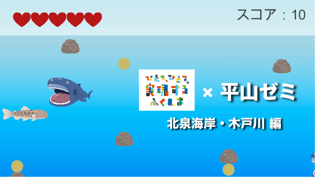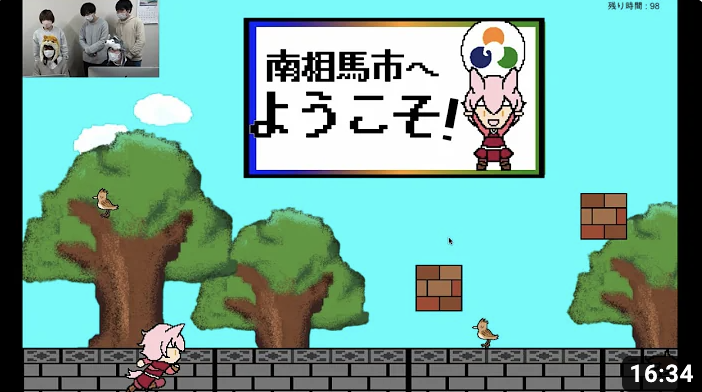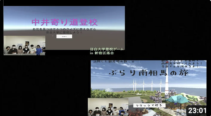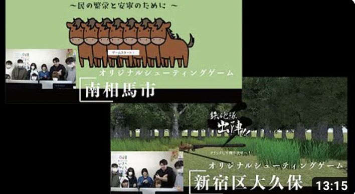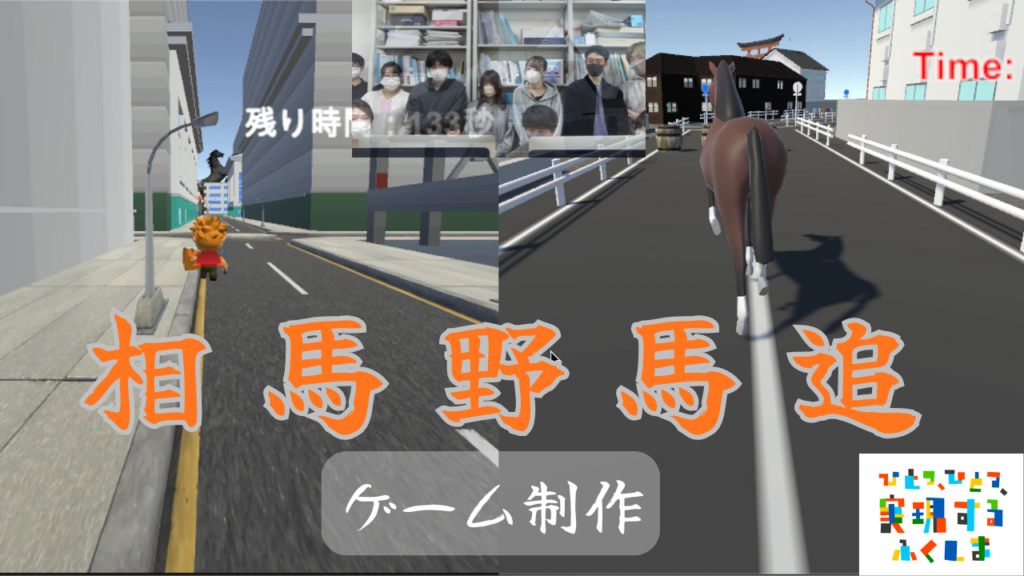 世界標準のゲームエンジンUnityを使います。プログラミング言語は「C#」です。しかも、単にゲームプログラミングを学ぶのではなく、福島県総務部広報課、福島イノベーションコースト構想推進機構、認定NPO法人環境市民、福島県南相馬市観光交流課、新宿観光振興協会などの団体と社会連携しながら学んでいきます。例えば自分達のアイディアを盛り込んだ福島県スローガン「ひとつ ひとつ 実現する ふくしま」のPRゲーム、福島イノベーションコースト構想のPRゲーム、認定NPO法人環境市民のPRゲーム、新宿・南相馬観光のPRゲームなどを企画し、実際に制作します。更に制作したゲームの実況動画をYouTubeに公開することで、各種団体の活動のPRを行います。ゲームの制作とともに、各種団体のためにどのような工夫が必要かを実際のプロジェクトを通じて体験します。報告会でお褒めの言葉を貰った時は、最高に嬉しいです。ヤッターって感じです。