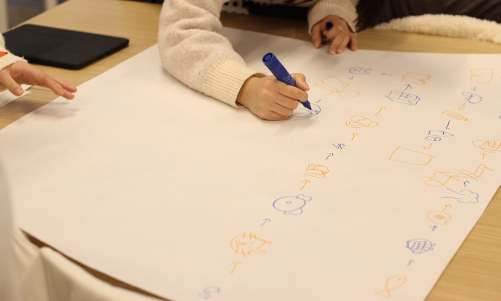 最初のアクティビティとして「絵しりとり」を実施。初対面同士が言葉を使わず絵でつながることで、自然と会話が生まれ、緊張がほぐれました。「思ったより難しかったが発想力が鍛えられた」「絵が苦手でも楽しめた」といった声が多く寄せられました。