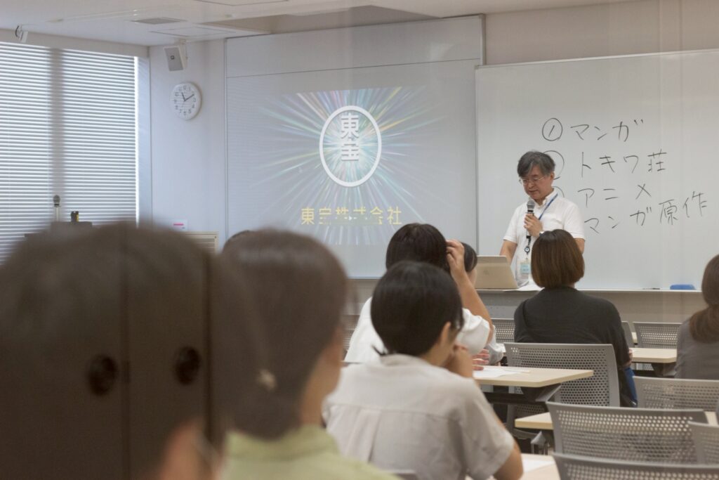 鷲谷正史先生による模擬授業「マンガの聖地とメディア」では、アニメや映画の原作となるマンガに注目。手塚治虫や藤子・F・不二雄らが青春時代を過ごした「トキワ荘」を起点に、名作誕生の裏側にある「仲間」との出会いや、創作を支える環境についても考察しました。創作のリアルに触れ、マンガの社会的影響について改めて考えるきっかけとなったようです。