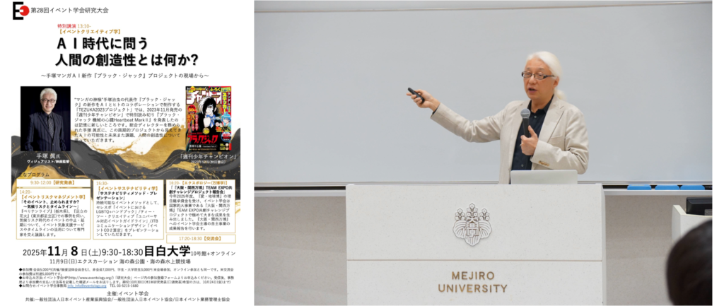 1限【イベントクリエイティブ学】特別講義「AI時代に問う 人間の創造性とは何か?~手塚マンガAI新作『ブラック・ジャック』プロジェクトの現場から~」と題し、ヴィジュアリスト/映画監督の手塚 眞氏をお招きし、AI黎明期での大変貴重なプロジェクトの裏側をうかがいました。