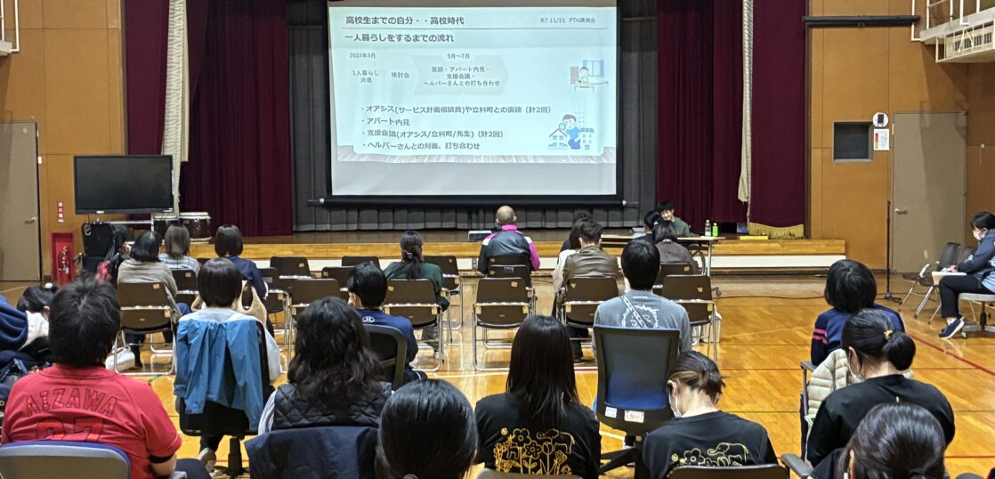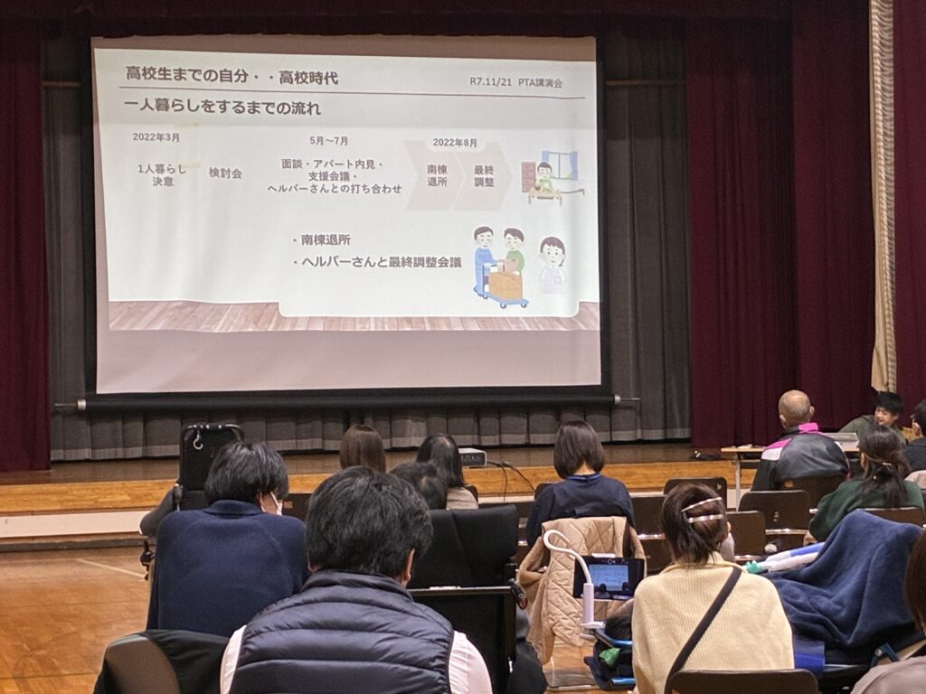講演後には、参加した生徒から「さまざまなことに挑戦していて勇気づけられた」、「見えないところで努力していたことを知り、自分も頑張ろうと思った」、「一人暮らしや支援の利用について具体的に知ることができ、将来の参考になった」といった感想が寄せられ、小林さんの挑戦する姿勢や行動力が大きな刺激となった様子が伺えました。