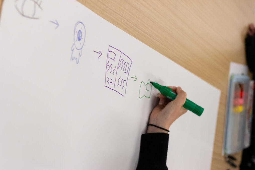 最初のアクティビティとして「絵しりとり」を実施しました。言葉を使わず絵でつなぐことで自然に会話が生まれ、初対面同士の緊張がほぐれました。