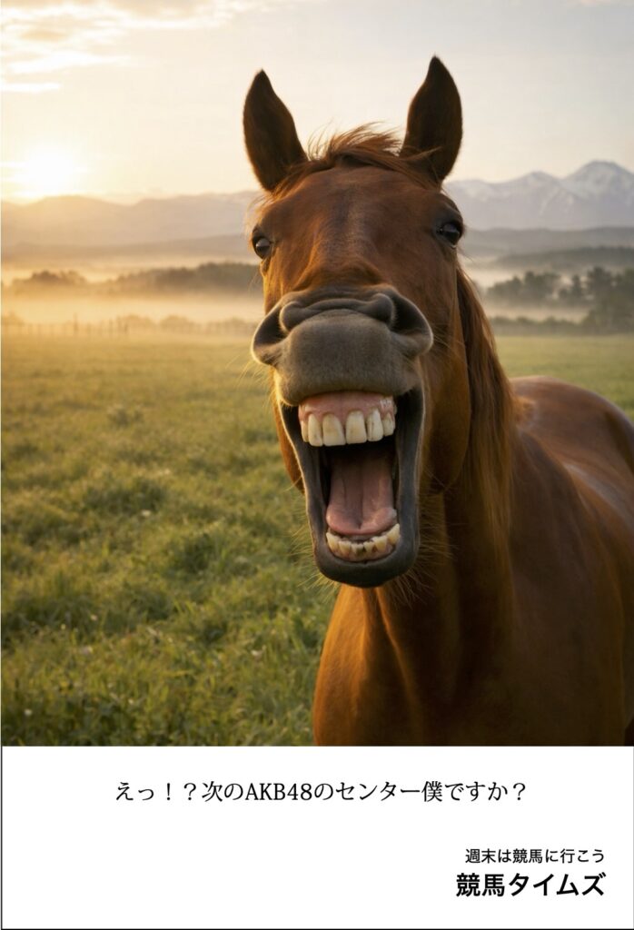 - TEAM B: 驚いた表情の馬の写真に「えっ!?次のAKB48のセンター僕ですか?」というコピーを添え、競馬雑誌の広告に 。