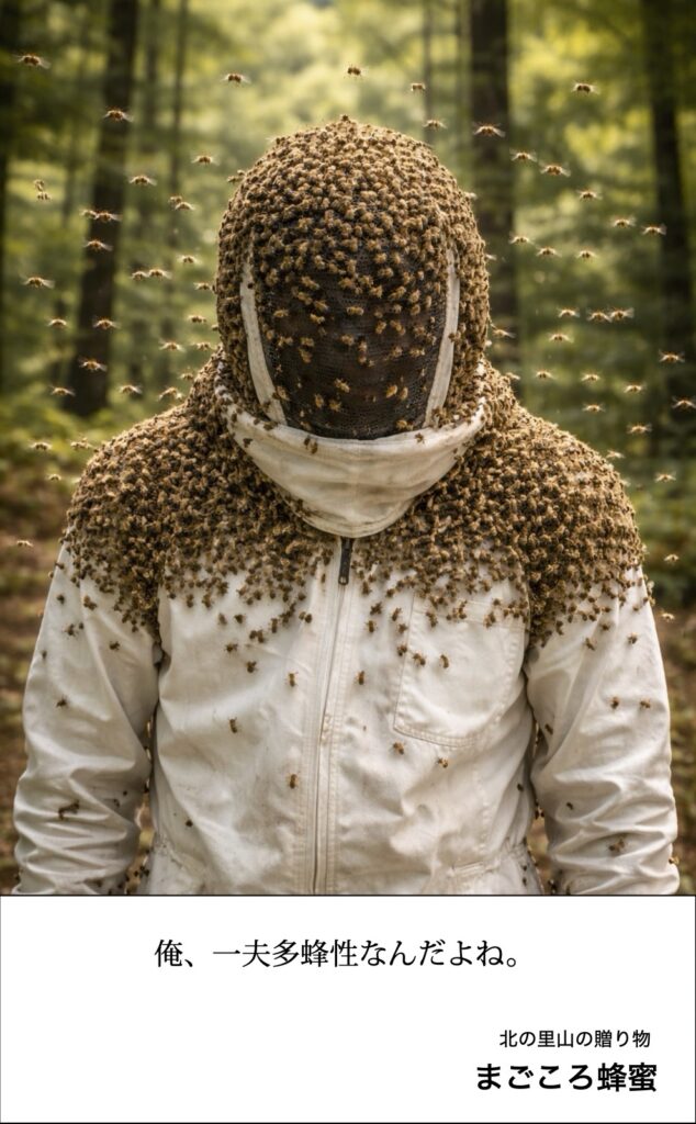 - TEAM H: 蜂が群がるアップ写真に「俺、一夫多蜂性なんだよね。」というパンチの効いた言葉を乗せ、蜂蜜の広告に 。